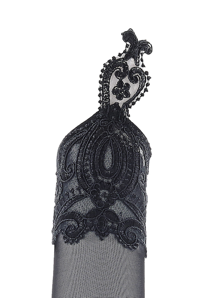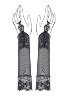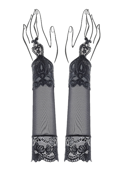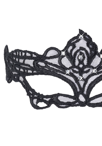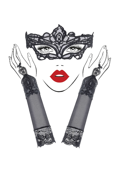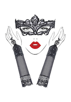 Zusammenpassendes Set aus romantischer Augenmaske mit kleinen Glitzersteinen und ca. 44cm langen Handschuhen.