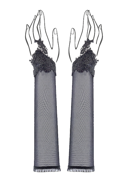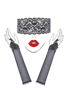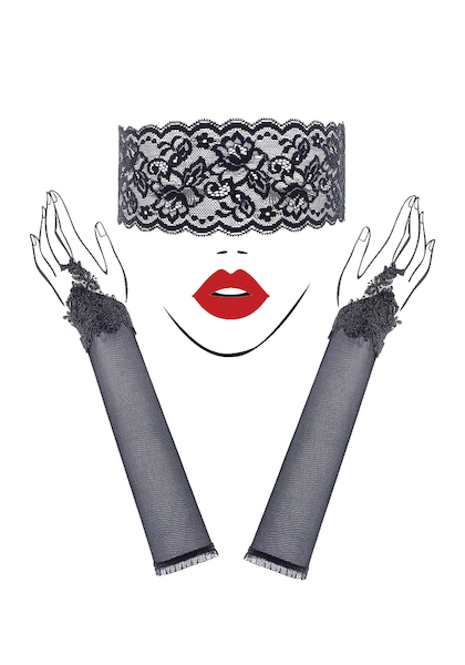 Spitzen-Augenmaske zum Binden mit passenden Armstulpen ca. 43cm lang.