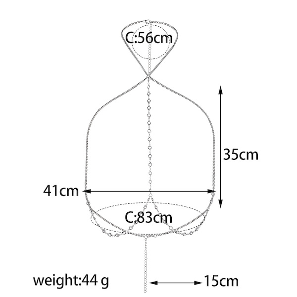 Schöne, filigrane Hals-Körper-Kette mit Strassteinchen. Mehrfach verstellbar.