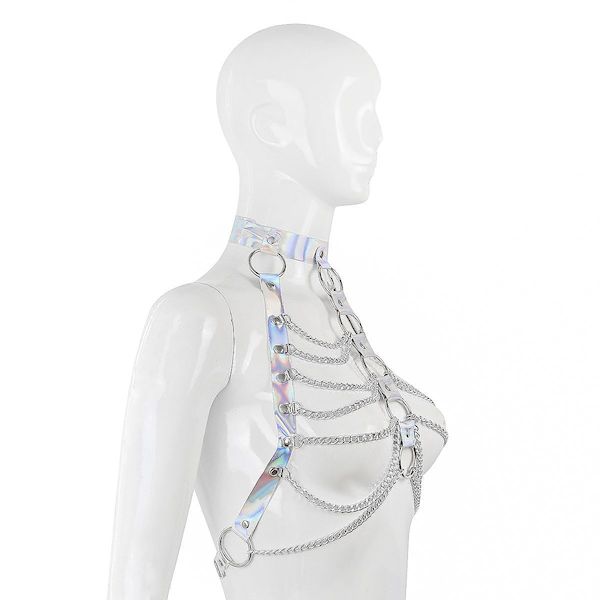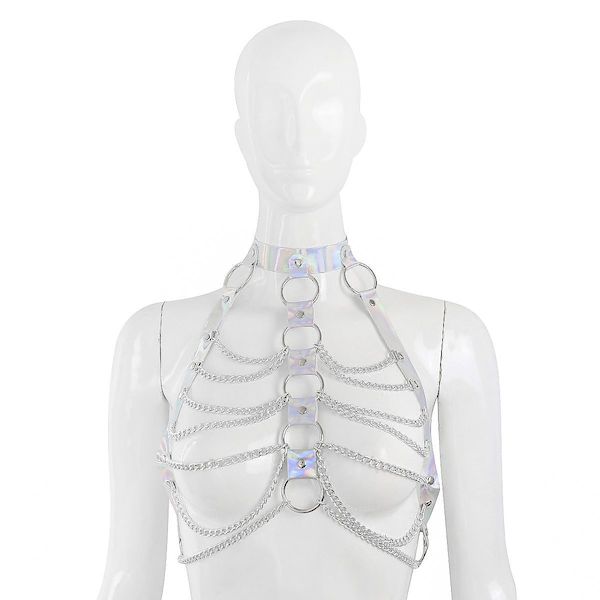 Silbern schimmerndes Kettenoberteil für Sie mit großen Ringen