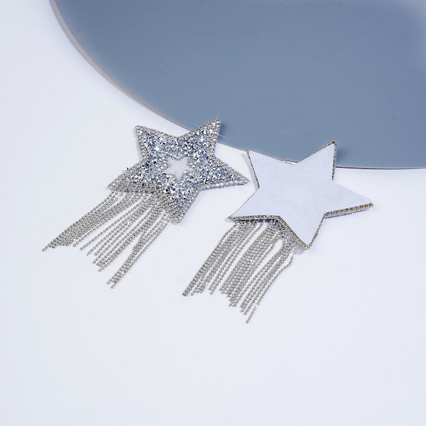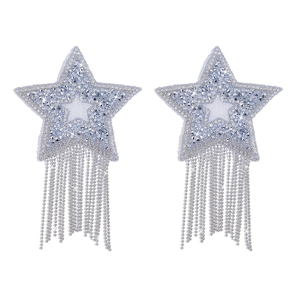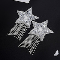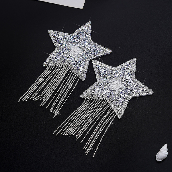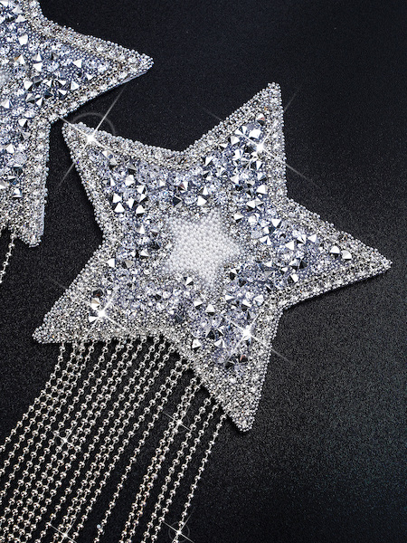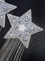 Elegante sternförmige Nippelaufkleber mit funkelndem Strassbesatz und feinen silbernen Perlenkettchen. Selbsthaftend.