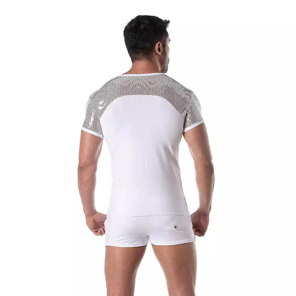 Jedes Stück wird in unserer Pariser Werkstatt sorgfältig entworfen und mit Leidenschaft genäht. Drücken Sie sich mit Anmut im Glitzer-T-Shirt für Herren aus, der perfekten Ergänzung für Ihre festlichen Abende!