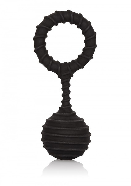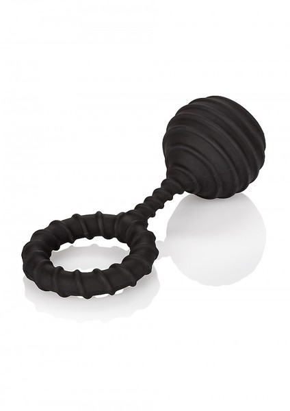 Geriffelter Penis/Hodenring aus stretchigem Silikon mit 3,25 cm Durchmesser. Das Kugelgewicht bring 110g auf die Waage.