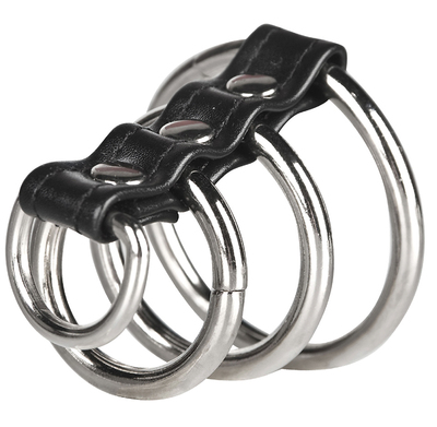 Leder Penismanschette mit 4 Penisringen aus Metall