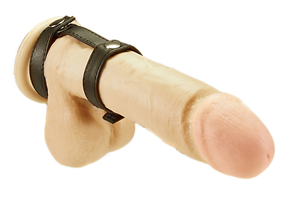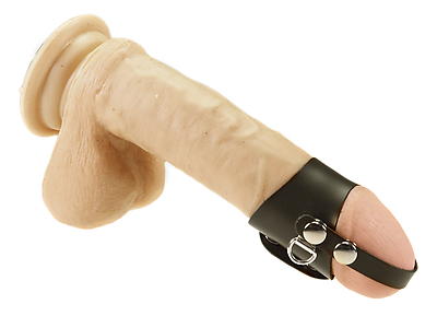 Penismanschette Leder schwarz mit Riemen