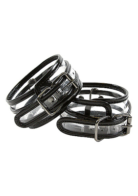 Breite Leder-Fußfesseln abschließbar weiss/schwarz