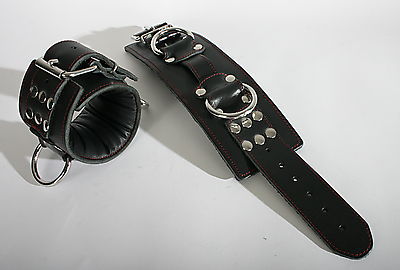 Weich gepolsterte schwarze Fußfesseln aus Leder