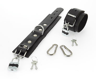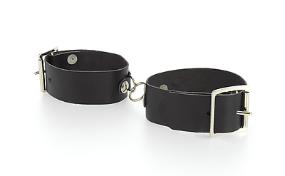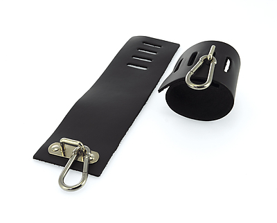 Breite Fußfesseln aus Leder schwarz mit Karabiner