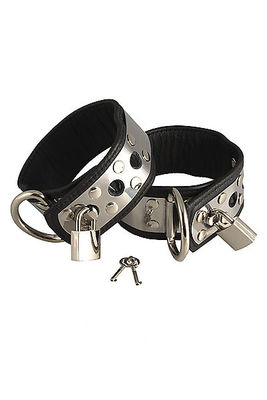 Leder-Fußfesseln mit Metallbeschlag und Vorhängeschloss