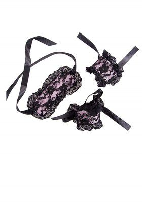 lila/schwarzes Set aus Klettfesseln und Augenmaske