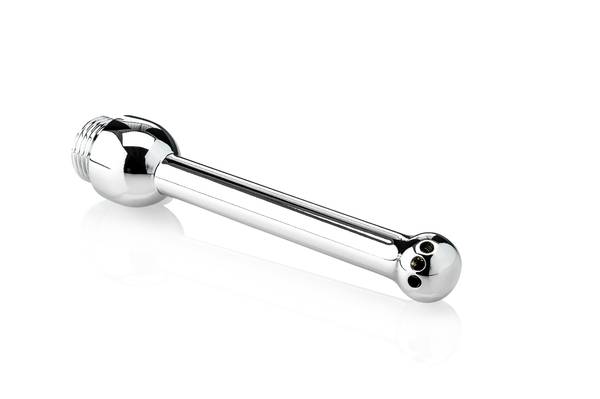 Maße: Gesamtlänge 130 mm, einführbar 100 mm, Ø Duschkopf 18 mm, Ø Schaft 12 mm. Gewicht 47 g.
