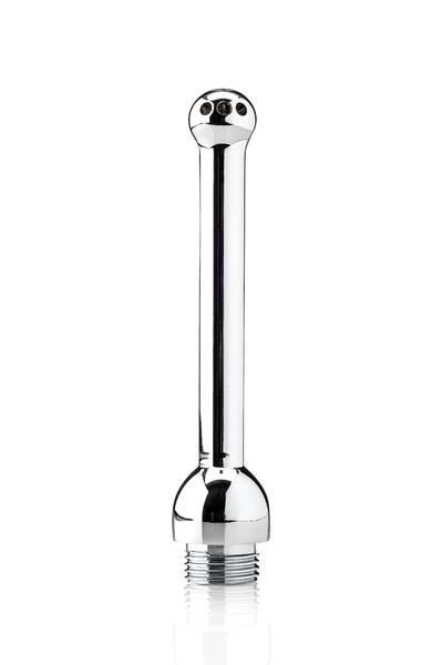 Silber glänzender Duschkopf mit drei Löchern für kontinuierlichen Wasserdruck, der die Analhygiene sanft und einfach macht.