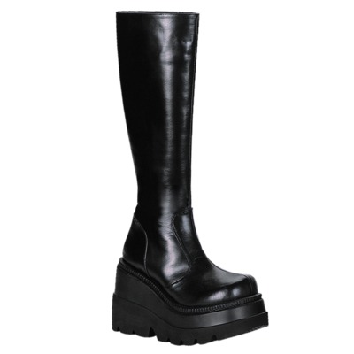 Kniehohe Stiefel mit Keilabsatz SHAKER-100 schwarz