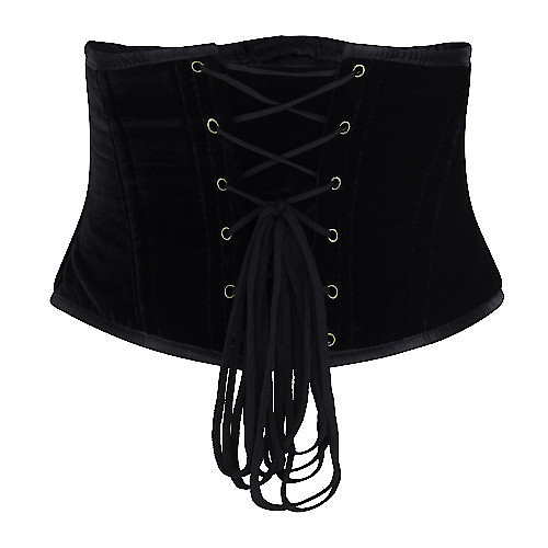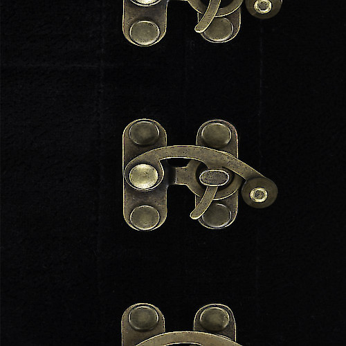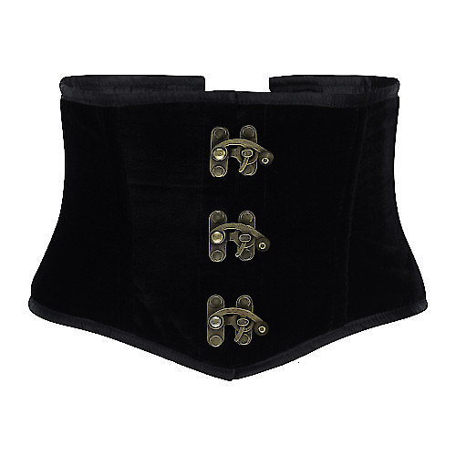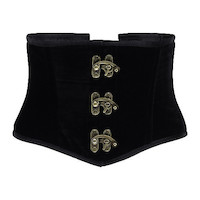 Herrlich barockes Taillenmieder zum Schnüren aus schwarzem Samt und drei brozefarbenen Steckhaken vorn.