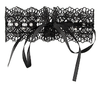 Ein bildschöner Anblick, dieses bestickte schwarze Halsband mit Strasssteinchen! Das schwarze, bestickte Band sieht äußerst edel aus und ist hübsch mit weißen Perlen und kleinen glitzernden Strasssteinen verziert. Der einzigartige Effekt wird bei dieser bildschönen Verarbeitung nicht ausbleiben. Geben Sie Ihrem Outfit den letzten Schliff!