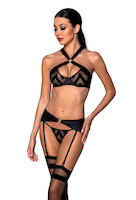 Verführerisches 3-teiliges Set gefertigt aus lederartigem Material sowie feinmaschigem Netz
