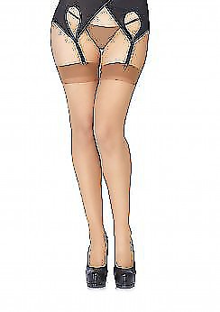Feine Strapsstrümpfe in edler Café-Farbe aus stretchigem Material für größere und kurvige Damen.