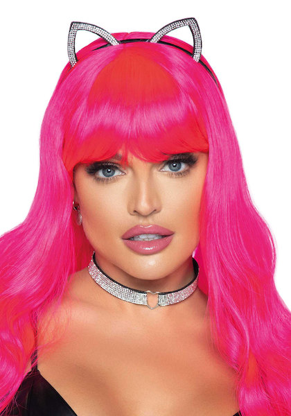 2 tlg. Katzen-Set: Ohren-Kopfschmuck und Halsband mit Herzanhaenger
