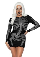 Elegantes Kleid mit langen Armen mit Strassbesatz im Skelett-Stil. Nicht nur zu Halloween sehr aufregend!