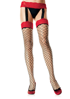Backseam Industrial Net Garterbelt Stockings With Ankle Bow