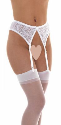 Weißer Spitzen-Strapsgürtel inklusive Strümpfen