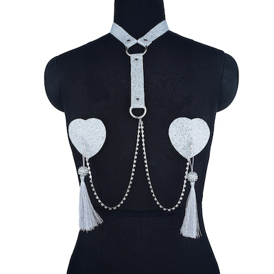 Silberne Stern Nipple Cover mit Perlenkettchen
