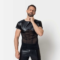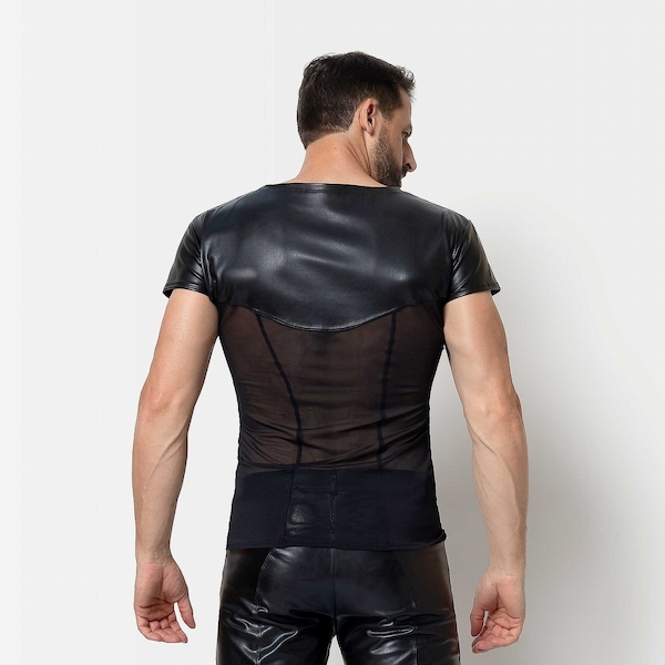Aufregendes T-Shirt für Ihn aus transparentem Material und weichem, elastischem Kunstleder.