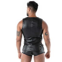 Das Kinky Black Lace-Up Tank Top ist aus hochwertigem, strapazierfähigem und komfortablem Material gefertigt. Der figurbetonte Schnitt schmiegt sich an Brust und Schultern und sorgt für einen maskulinen und gleichzeitig super sexy Look. Dank der robusten Ösen lässt sich die Schnürung individuell anpassen, und der Reißverschluss am Halsausschnitt erleichtert das An- und Ausziehen. Jedes Detail ist darauf ausgelegt, die männliche Silhouette zu betonen und gleichzeitig höchsten Tragekomfort zu gewährleisten.