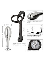 17.75cm x 5.75cm (Enhancer) | 7cm x 2.5cm (Plug) | 7.5cm x 1.25cm (Strap) | 4.5cm (Large Ring Diameter) | 3.75cm (Small Ring Diameter)