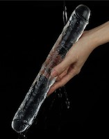 Flawless Clear Double Dildo hat einen Penis mit realistischen Adern an beiden Enden. Der Dildo ist sehr flexibel und für die Doppelpenetration geeignet.
