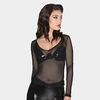 Durchsichtiges Shirt für Sie mit langen Ärmeln und leichtem V-Ausschnitt.