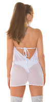 Sexy weißes Minikleid mit Wasserfall-Ausschnitt und Neckholder.