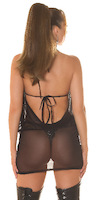 Sexy schwarzes Minikleid mit Wasserfall-Ausschnitt und Neckholder.