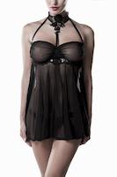 Erotisches Negligé aus transparentem, elastischen Netz Häkelspitze mit floralem Muster bügellos, mit verstellbaren Trägern inklusive passendem Slip