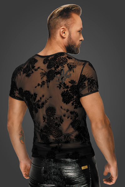 Verspieltes Herren T-Shirt mit Flockstickerei für Herren. Ein sexy und verspieltes Oberteil für viele Gelegenheiten.
