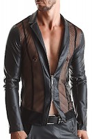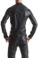 An der Vorderseite legt es die sichtbare Brust effektiv frei. Ein kurzer, silberner Reißverschluss setzt Stil, harmoniert wunderbar mit zahlreichen vertikalen Linien, die das schwarze Mesh und das schwarze Wetlook-Material verbinden. Slieder sind mit einem eingravierten RFP-Logo verziert. Auffallend sind auch die charakteristischen, schmalen Revers. Es ist ein klassisches Detail, integriert in den modernen Look der Jacke.