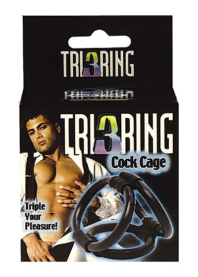 Dieses schwarze Penis-Ring-Trio aus Latex legt sich wie ein 'Käfig' um Ihren Penis und Ihre Hoden. Zwei der Ringe haben einen Durchmesser von 3,5 cm, einer von 4 cm.