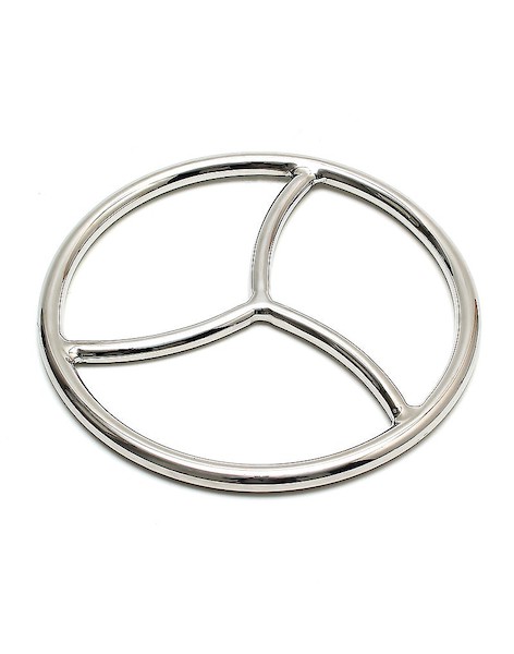 Dieser silberfarbene Bondage-Ring ist ein Accessoire, das mit Shibari, der japanischen Seilknotenkunst, verwendet wird. Dieser Ring wird als zentraler Punkt zum Binden von Bondage-Seilen verwendet. Der Triple Shibari Ring besteht aus nicht magnetischem Edelstahl und ist robust genug, um viel Gewicht auszuhalten. Der Durchmesser des Rings beträgt 23,5 cm und ist 1,5 cm dick.