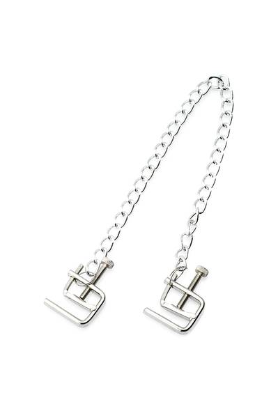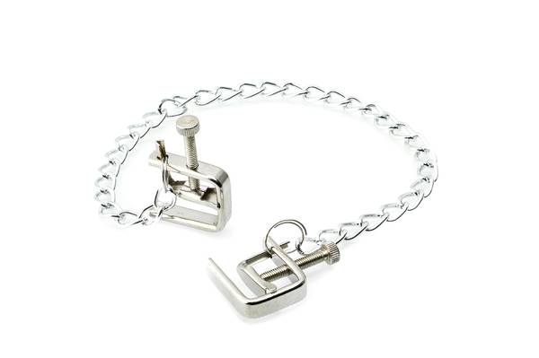 Diese Metall-Nippelklammern sind mit einer 285 mm langen Kette verbunden und können ganz präzise eingestellt werden, um den gewünschten Druck aufzubauen.