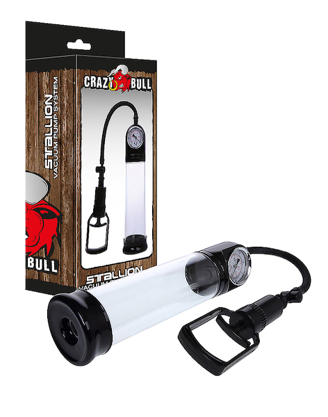 Crazy Bull Stallion Manometerpumpe. Hilfe für die Erektion. Dieser Penisvergrößerer saugt ein Vakuum, das den Penis wachsen lässt, er wird größer, dicker und länger. Ihr bester Personal Trainer.