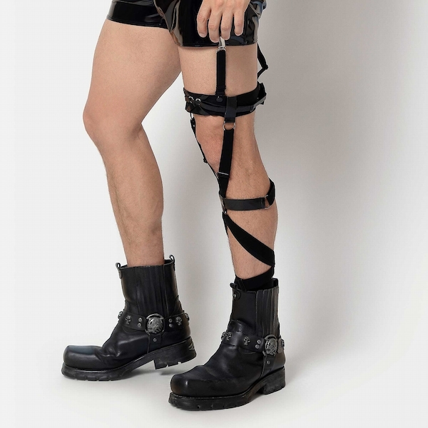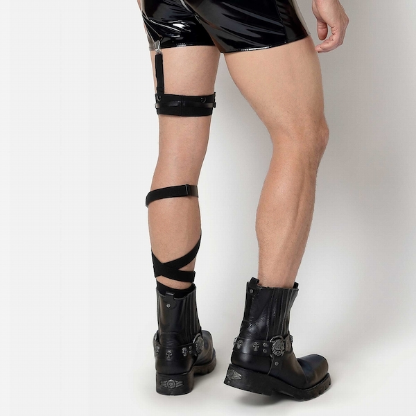 Verstellbarer Beinharness mit Ringen und Krokodil-Klemme zum Befestigen. Einheitsgröße verstellbar von ca. S bis XXL.