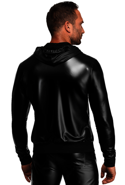 Aus dehnbarem Powerwetlook mit glatter Oberfläche. Mit langen Ärmeln, Kapuze, Frontreißverschluss und gerippten Bündchen an Handgelenken und Saum. Figurbetont, flexibel und angenehm weich auf der Haut.