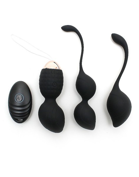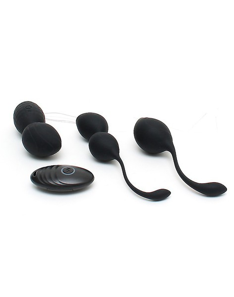 Luxussatz verschiedene vibrierende vaginale Bälle. Dieses Set enthält eine wiederaufladbare Kegelkugel mit Fernbedienung für Batterien und 2 Kegelkugeln mit beweglichem Gewicht im Inneren, die für die Vibrationen sorgen. Verschiedene Bälle mit unterschiedlichen Formen, ideal zum Trainieren Ihres Beckenbodens und zur Steigerung Ihres sexuellen Vergnügens. Beginnen Sie mit den Bällen, die am einfachsten zu tragen sind, die größten und das geringste Gewicht haben. Beginnen Sie mit ein paar Minuten am Tag und bauen Sie es auf. Trainiere länger und wechsle zu den kleineren Bällen, die etwas schwerer zu halten sind. Mit Hilfe der Fernbedienung hilft Ihr Partner auch bei Ihrem Training. Diskret, sicher und viel Spaß für beide während eines Abends.