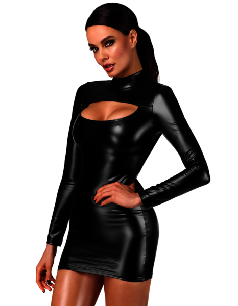 Erleben Sie Eleganz und Charakter mit diesem figurbetonten schwarzen Powerwetlook-Minikleid, das gewagten Stil mit raffinierter Eleganz verbindet. Es ist ein echter Hingucker und unterstreicht Selbstbewusstsein und Charme in jedem Detail.