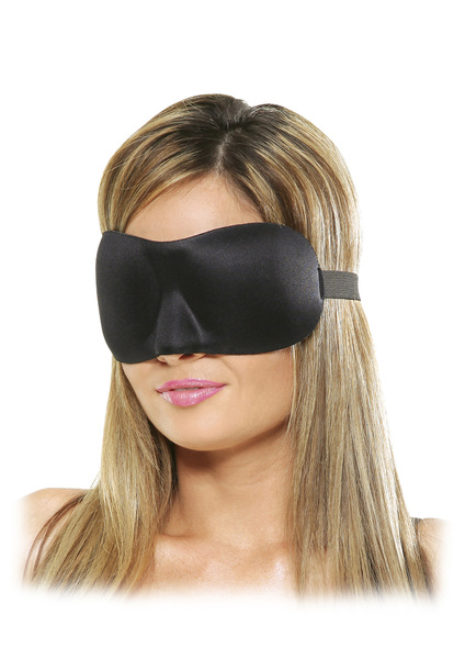 Weiche absolut blickdichte Augenmaske mit Polsterung und Nasenaussparung für perfekten blinzelfreien Sitz. Mit Gummizug.