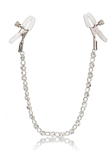Bringen Sie das Gefühl auf die nächste Stufe und genießen Sie neckendes Nippelspiel mit den Nipple Play® Crystal Chain Nippelklemmen; Entdecken Sie ein erhöhtes Gefühl mit den 2 vollständig verstellbaren Nippelklemmen, der neckischen Kette und den funkelnden Kristallen. Erreichen Sie mit den verstellbaren Klemmen ein neues Maß an spielerischem Vergnügen; Klemmen Sie die frechen Klammern an Ihren Körper und genießen Sie jeden Ansturm von Schmerz und Vergnügen. Die neckende Klemme hat eine einstellbare Spannung, um überall auf Ihrem Körper für spielerisches Necken zu stimulieren; Wenn die Spannung zunimmt, verstärkt sich das Kribbeln mit jeder Drehung des Einstellrads für das ultimative Nippelstimulationsspielzeug. Mit der neckenden Klammerstimulation und der erhöhten Durchblutung können Sie sich darauf freuen, die Empfindlichkeit der Brustwarzen zu verstärken und die allgemeine Erregung zu intensivieren. Diese benutzerfreundlichen Nippel-Teaser sind ideal für Sie oder Ihn. Die beiden verstellbaren Klemmen bestehen aus nickelfreiem Eisen mit Silikonummantelung, einer nickelfreien Metallkette und Silica-Kristallen.
