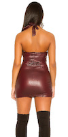 Bordeauxrotes Minikleid aus Wetlook mit Neckholder zum Binden. Einheitsgröße, passend ca. S-L