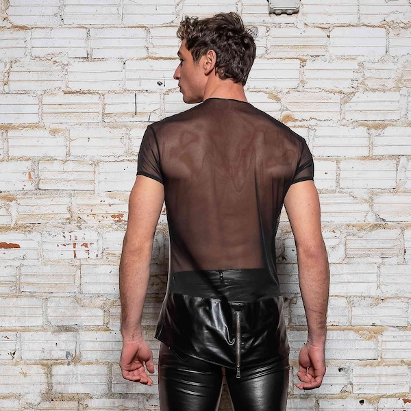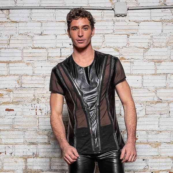 Scharfes Herren-Shirt aus Wetlook mit transparenten Einsätzen unf auffälligen Reißverschlüssen.