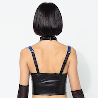 Wunderschönes Kurztop aus Wetlook mit blauen, verstellbaren Trägern und vorderen Zierreißverschlüssen