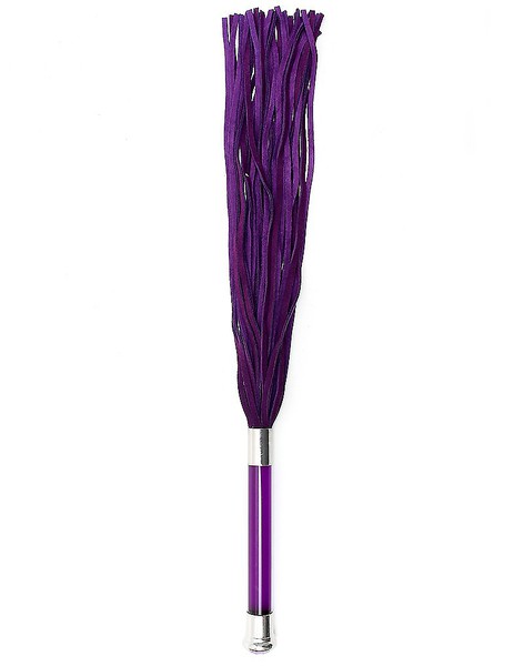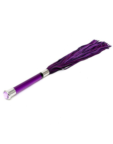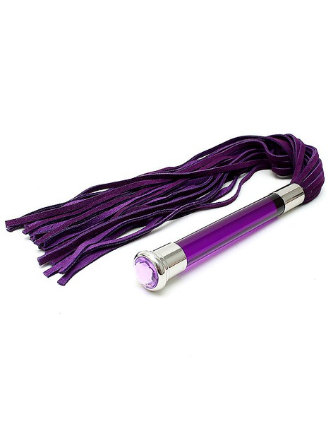 Edler Wildlederflogger mit kühlem Glasgriff, in den ein Schmuckstein eingelassen ist. 58 cm lang